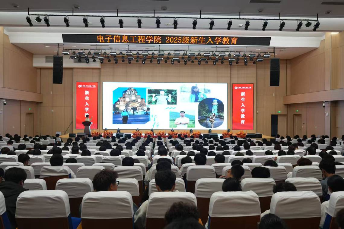 9月11日,电子信息工程学院组织2025级新生教育大会。25级全体新生齐聚A3学术交流中心三层报告厅,24级学生代表一同参会。25级辅导员聂维琦老师主持大会。