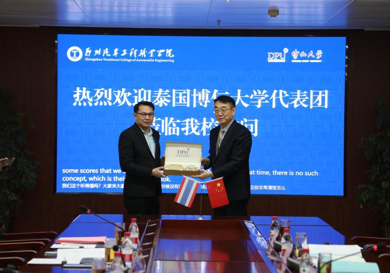 双方在行政楼701第一会议室举行了座谈交流。薛培军对泰国博仁大学代表团的来访表示诚挚欢迎,并详细介绍了我校的办学情况以及在学科建设、人才培养、国际交流等方面的成就与规划。他指出,在中国对外开放的持续进程中,我校对于合作办学、人才培养、教师互访等方面早有规划。作为扎根中原大地的高等职业院校,郑州汽车工程职业学院始终以“服务产业升级,链接国际资源”为己任。近年来,学校聚焦新能源汽车、智能网联技术等前沿领域,构建了“产教深度融合、校企协同创新”的育人体系,打造了汽车产业人才高地。他希望双方聚焦学生交流交换、实习实践、新能源汽车等领域的联合研究、联盟共建、产学研合作等,整合两校优势资源,打造中泰高教合作标杆,推动两国教育文化领域交流合作,为两校师生带来更多发展机遇。