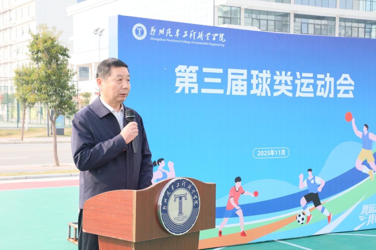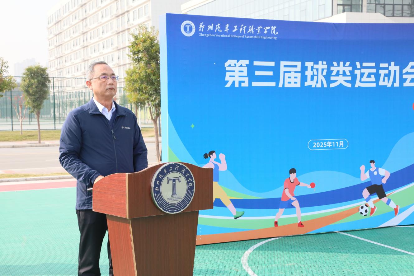 为丰富校园文化生活,增强学生身体素质,彰显郑汽学子团结拼搏、昂扬向上的精神风貌,2025年11月4日下午,郑州汽车工程职业学院第三届球类运动会在学校运动场隆重开幕。校长助理臧俊炎、沙杰,学生处、团委、各学院负责人、辅导员、全体运动员、裁判员等参加了开幕式。