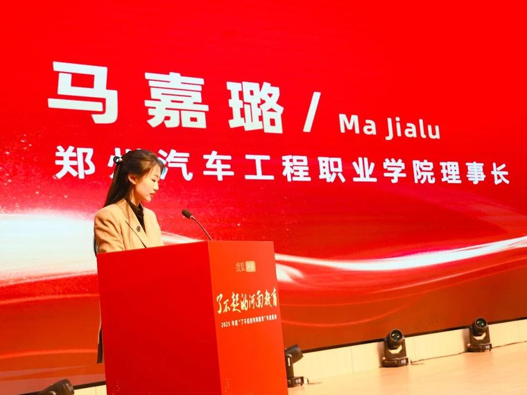 作为承办方,我校理事长马嘉璐致欢迎辞,她代表学校对各位领导、嘉宾及教育同仁的到来表示最热烈的欢迎,向长期关心支持河南教育事业与学校发展的搜狐河南及社会各界朋友致以诚挚感谢。她指出,我校始终坚持以习近平新时代中国特色社会主义思想为指导,深入贯彻落实党的二十大及二十届历次全会精神,将立德树人根本任务贯穿人才培养全过程。作为河南省第一所建在产业园区内的汽车类高职院校,学校紧密围绕区域发展战略,依托汽车产业园区位优势,与比亚迪、华为、京东、西门子等头部企业共建4个混合所有制产业学院,创新构建“前厂后校”“校中厂、厂中校”办学模式,形成了覆盖汽车全产业链的特色专业群,推行“企业导师+校内导师”的双导师制和“1+1+1”递进式人才培养模式,真正实现课堂与车间融合、教学与生产同步。她强调,教育是国之大计、党之大计,职业教育是培养技术技能人才、促进就业创业创新、推动区域经济社会发展的重要支撑。期待与大家以此次盛典为契机,深化合作、携手并肩,共同为河南教育事业的蓬勃发展、为新时代职业教育的辉煌未来贡献更大力量!