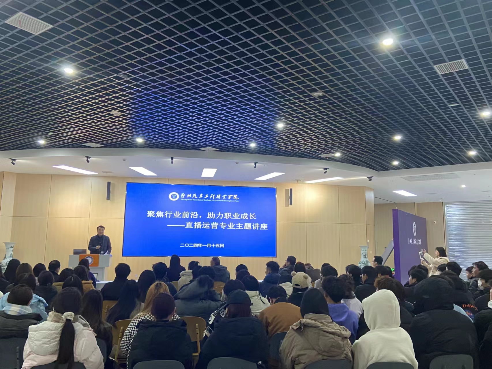 为加深电商物流学院师生对直播电商行业发展趋势和未来前景的了解,2024年1月15日,电商物流学院邀请河南高山流水文化传播有限公司,弘尚文化传媒等业界优秀直播专家团队,举办“聚焦行业前沿,助力职业成长——直播运营专业主题讲座”,分享关于直播电商的深入见解和宝贵经验。