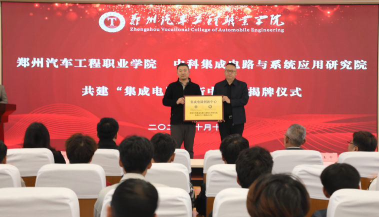 10月16日,我校与中科集成电路与系统应用研究院(以下简称“中科研究院”)在知方楼二楼报告厅举行“集成电路创新中心”揭牌仪式暨校外实践基地授牌仪式。中科研究院人才培养服务平台主任、华积电总经理时鹏飞,河南电子信息职教集团副理事长、中科华积电生态运营总监段鹏飞等企业代表,学校副校长王新宇、校长助理兼智能制造学院院长沙杰等领导,以及2024级集成电路专业全体师生参加仪式,仪式由电子信息工程学院院长李赟主持。