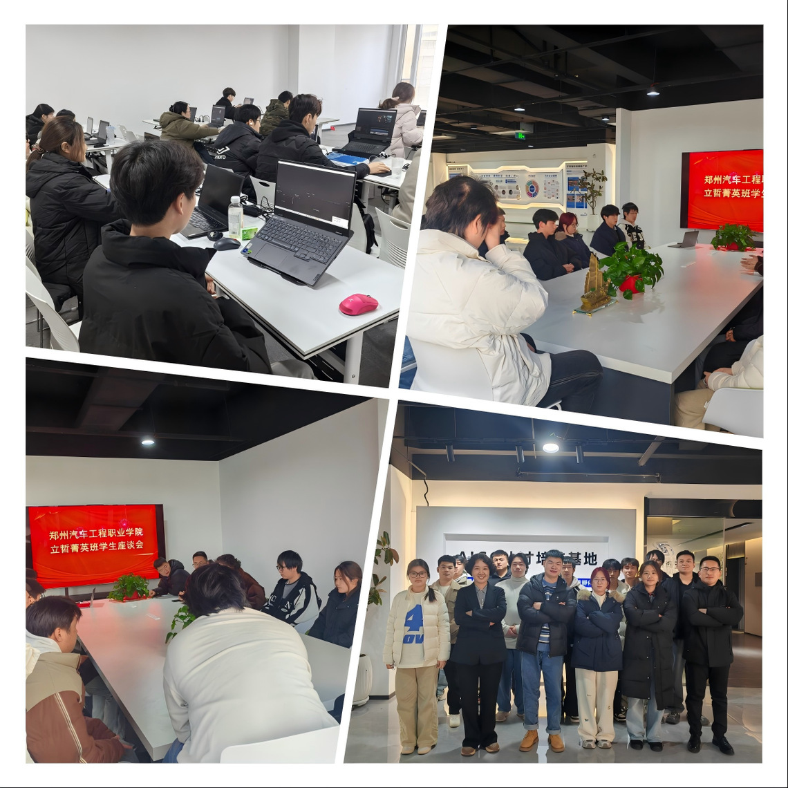 12月29日,为落实学院产教融合战略、深化校企协同育人,郑州汽车工程职业学院电子信息工程学院赴立哲科技,与立哲菁英班学生召开专题座谈会,靠前推进人才培养落地。座谈中,询问学生实习实践的一线难题、回应学业发展诉求,与企业方精准对接人才培养标准,为后续产教融合、实践资源匹配明确方向。立哲科技也向学院汇报了学生实践表现,在育人细节达成共识。此次座谈搭建了院校、企业与学生的沟通桥梁,助力产教协同育人落地。学生们表示将以更饱满的状态投入实践,提升专业能力。