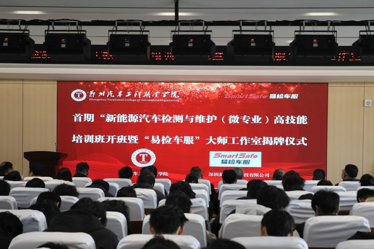 王新宇在致辞中指出,新能源汽车产业是当前汽车行业发展的关键方向,培养新能源汽车检测与维护高技能人才,是学校服务产业发展、助力区域经济建设的重要举措。他表示,此次微专业高技能培训班的开设及“易检车服”大师工作室的成立,是学校深化产教融合、推进校企合作的又一重要成果。学校将以此次合作为契机,整合校企优质资源,持续提升人才培养质量,为新能源汽车产业输送更多优秀技能人才。