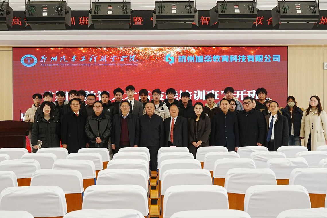 12月19日,我校与杭州旭燊教育科技有限公司合作共建的“豫杭数智人才”联合培养基地揭牌暨首期“数智人才高技能培训班”开班仪式在校学术交流中心隆重举行。学校创始人马锡林、副校长邢金山等校方领导,与河南省教育后勤协会秘书长王明忠、中原工业经济战略研究院院长李兴智,以及杭州旭燊教育科技有限公司董事长张杰、河南分公司总经理赵利利等嘉宾共同出席。仪式由国际学院副院长栾则臣主持,学校相关二级学院负责人、首期培训班全体学员及学生代表共计200余人参加。