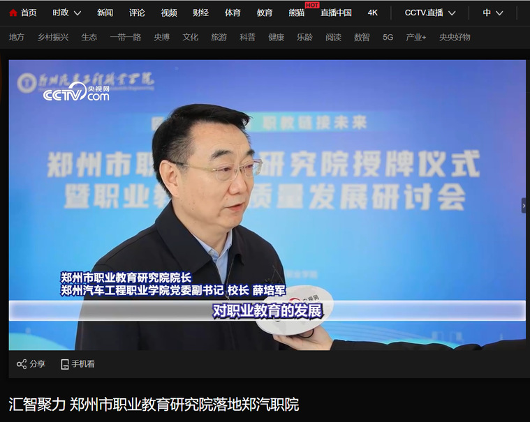 近日,郑州市职业教育高质量发展研讨会暨郑州市职业教育研究院授牌仪式在我校隆重举行。央视网、郑州市教育...