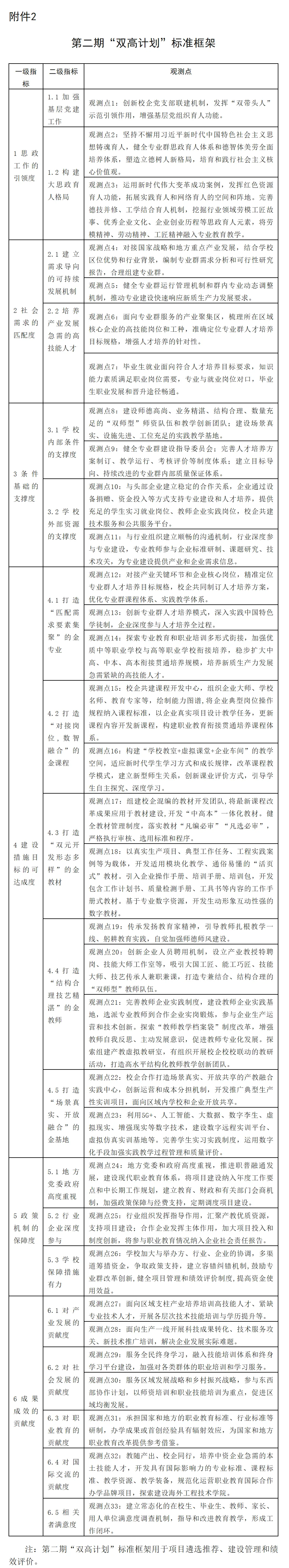 两部联合制定第二期“双高计划”工作方案和标准框架(见附件1、2),确定各地建设单位名额及布局重点(见附件3),牵头建立多部门协同推进机制,加强对项目建设的政策支持和跟踪指导。各地将项目建设纳入年度工作要点和中长期规划,建立教育、财政和有关部门会商机制,定期调度项目建设,确保建设成效。学校加大与举办方、行业、企业的沟通,多渠道筹措资金,争取政策支持,鼓励专业群改革创新,健全项目管理和资金使用制度,提高资金使用效益。