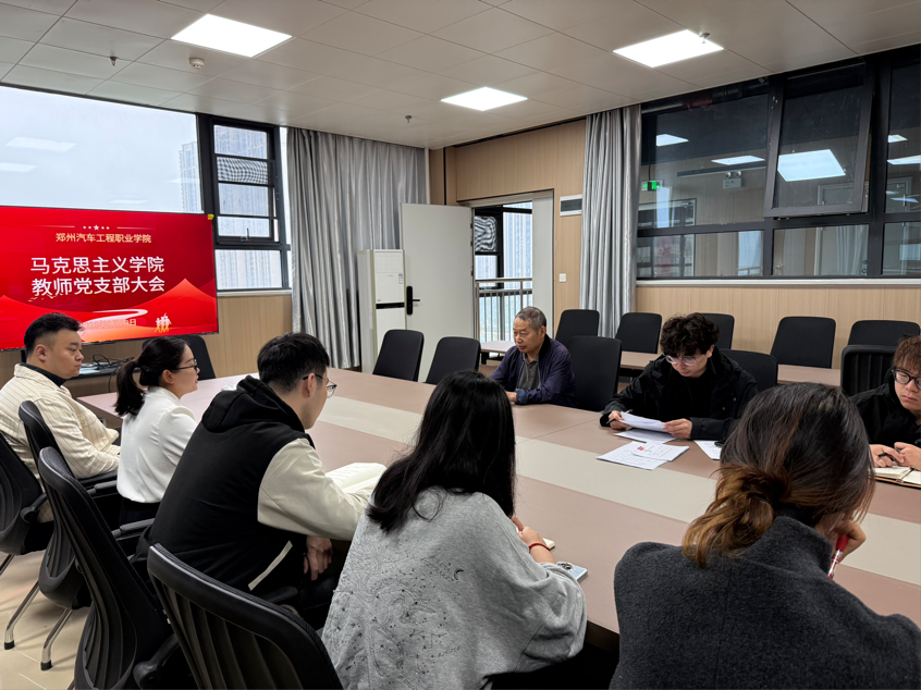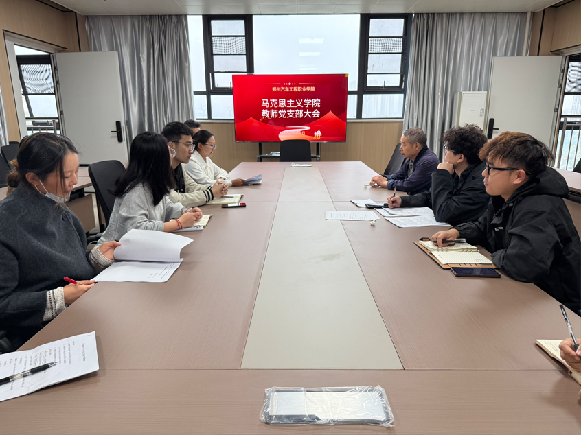 2025年9月19日,中国共产党郑州汽车工程职业学院马克思主义学院教师支部在学院会议室召开全体党员大会,主要讨论并表决姚晓玲同志加入中国共产党事宜。支部全体党员出席会议,会议由党支部书记殷盛杰主持。