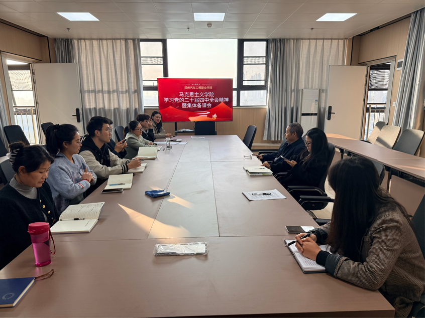 为深入学习贯彻党的二十届四中全会精神,将会议精神精准融入教育教学实践,2025年10月31日下午,马克思主义学院在知新楼七楼会议室召开深入学习党的二十届四中全会精神暨集体备课会。