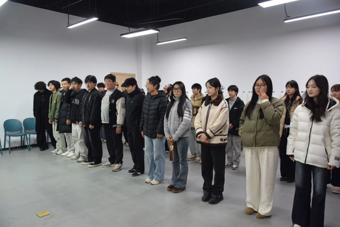 培训伊始,通过“12循环报数(跳过3)”规则分组——学员按1、2循环报数,报“1”的同学为第一排,报“2”的同学为第二排,两排即为后续团队共创的基础单元。没有复杂形式,仅以简单报数快速集结,两排学员在立正、看齐的口令中调整队形,虽未形成队名,却在一次次眼神交汇中打破陌生感,为后续共创埋下伏笔。