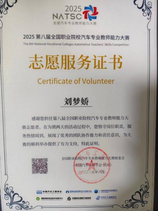 刘梦娇,女,共青团员,郑州汽车工程职业学院电商物流学院、数字艺术与设计学院网络营销与直播电商2402班学生。现任院学生会主席团成员、网络营销与直播电商2402班班长、汽模协会会长。曾荣获第34届世界客属华裔小姐大赛季军、国家志愿者证书、郑州汽车工程职业学院第一届校园辩论赛优秀奖、优秀学生干部、国家励志奖学金等,累计志愿服务时长53.36小时,2024-2025学年全年级成绩排名第五,用实干与坚守诠释当代大学生的青春担当。