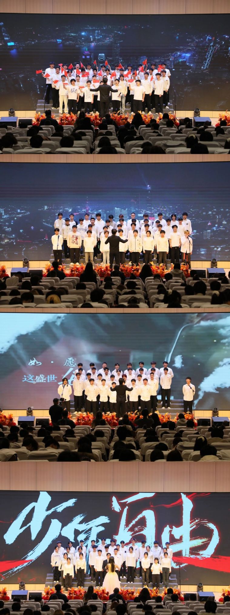 为纪念“一二·九”运动90周年,弘扬爱国主义精神,展现新时代青年学子的昂扬风貌。12月9日,我校在学术交流中心三楼报告厅举办“一二·九”红歌合唱比赛。来自各学院(中专部)的12支参赛队伍同台竞演,以歌声抒发深沉爱国情,以旋律礼赞壮阔新时代。