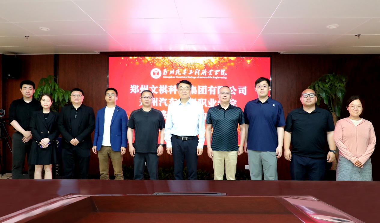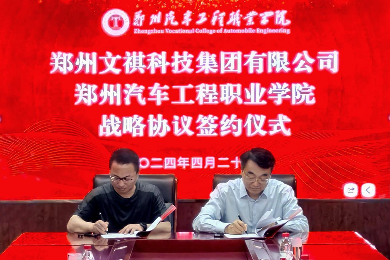 在热烈的气氛下,郑州文祺科技集团有限公司总经理隽松和我校校长薛培军共同签订了郑州汽车工程职业学院与郑州文祺科技集团有限公司校企合作协议书。