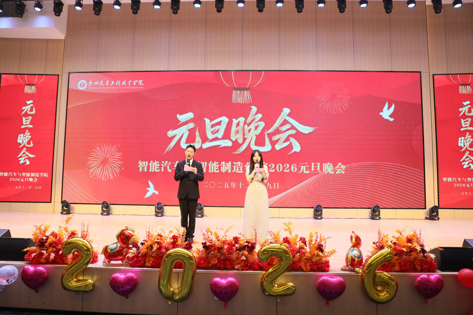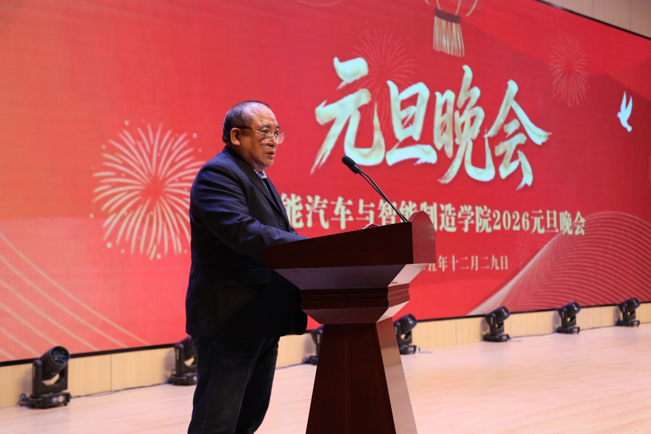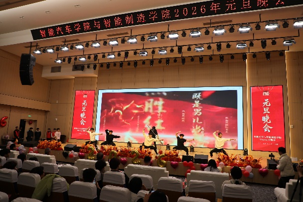 岁序更替,华章日新。12月29日晚,由智能汽车学院和智能制造学院联合举办的2026元旦晚会盛大启幕。校院两级领导与两院师生齐聚一堂,共赏视听盛宴,辞旧迎新,现场灯光璀璨、暖意融融,处处洋溢着青春的活力与节日的喜悦。