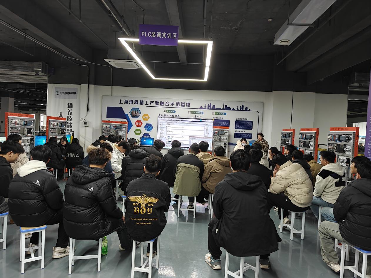 课程伊始,陈老师便以互动提问和现场演示的方式激发学习兴趣,迅速调动起全班同学的参与积极性。同学们专注聆听、主动记录,遇到疑问及时举手请教,课堂互动频繁。不少对PLC技术感兴趣的校内教师也纷纷走进课堂,与学生一同听课学习,形成了师生共研的良好氛围。