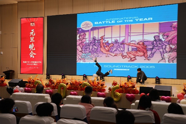 岁序更替,华章日新。12月29日晚,由智能汽车学院和智能制造学院联合举办的2026元旦晚会盛大启幕。校院两级领导与两院师生齐聚一堂,共赏视听盛宴,辞旧迎新,现场灯光璀璨、暖意融融,处处洋溢着青春的活力与节日的喜悦。