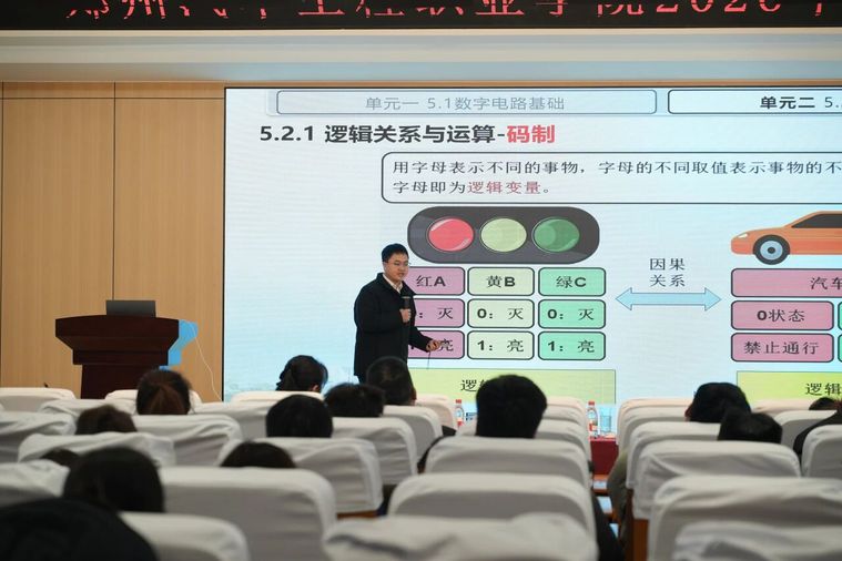 评审团由资深职教专家、校领导及教学管理代表共同组成,秉持公平、公正、公开原则,围绕三大环节对参赛教师进行多维度综合评审。赛事尾声,特邀专家郑州科技学院副校长刘亮军作现场点评,高度肯定了大赛的组织水平与教师的专业表现,选手们的教学展示紧扣职业教育发展趋势,并提出了课程优化与教学创新的宝贵建议。