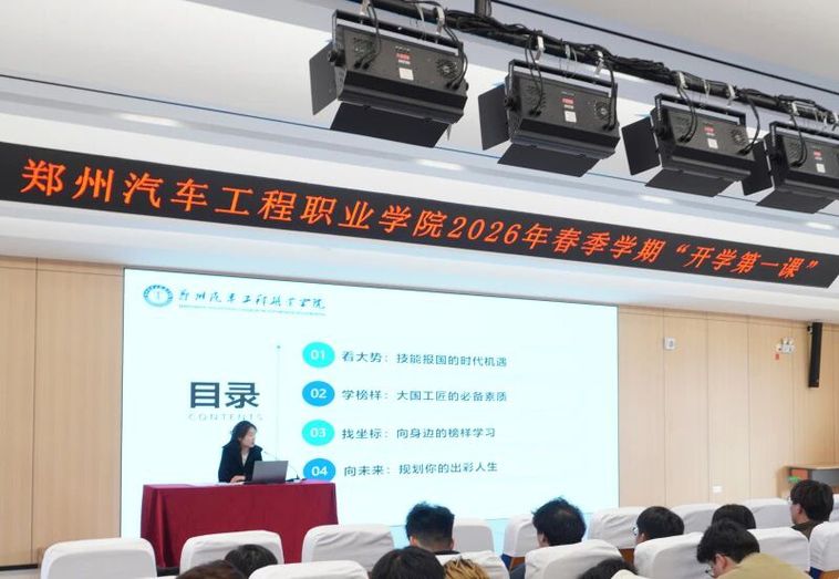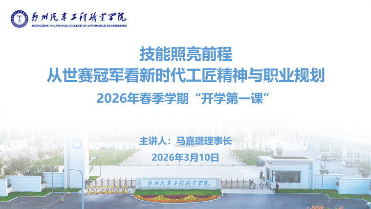 3月10日,我校2026年春季学期“开学第一课”在学术交流中心二楼报告厅隆重举行。理事长马嘉璐以“技能照亮前程——从世赛冠军看新时代工匠精神与职业规划”为主题,为全体辅导员、各班班长及优秀团学骨干带来一堂生动的思政大课。