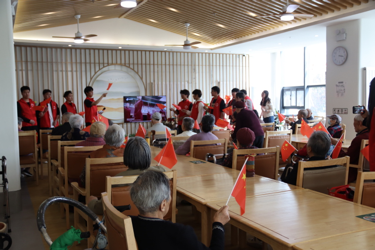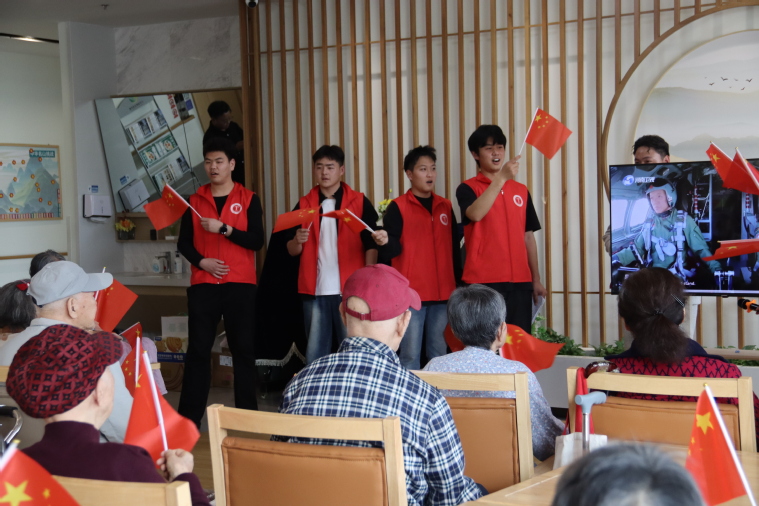 活动在温馨愉快的氛围中拉开序幕。志愿者们精心准备了丰富多彩的文艺节目。韩博文同学带来的经典戏曲表演韵味十足,赢得了老人们的阵阵掌声。随后的红歌合唱环节,志愿者们为老人们分发小红旗,大家挥动着旗帜,齐声高唱经典红歌,共同重温那段激情燃烧的岁月,现场气氛热烈而感人。活动中,老人们也兴致勃勃,纷纷展示自己的才艺,一段段戏曲、经典歌曲,展现了他们“老有所乐”的精神风貌。