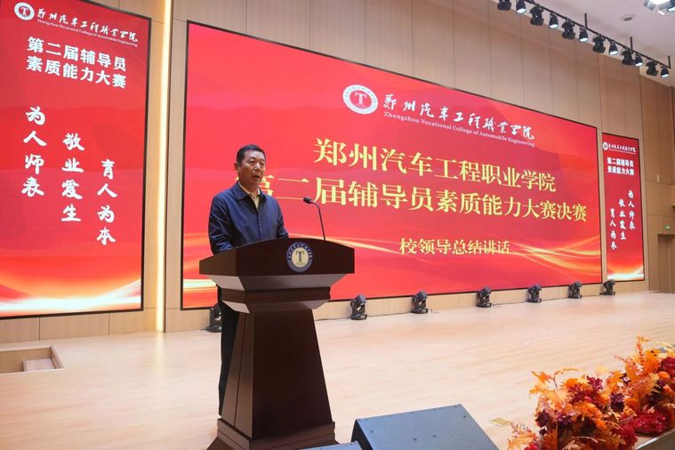 臧俊炎在总结讲话中对本次大赛给予高度评价。他指出,辅导员是落实立德树人根本任务的骨干力量,是学生成长路上的引航者、守护者和同行者。他强调,全体辅导员要以此次大赛为契机,持续提升履职能力:一是深化学习,做与时俱进的“领跑者”,时刻铭记“修德精技,慎思笃行”的校训,将工匠精神融入思政教育;二是厚植情怀,做学生信赖的“知心人”,坚持以学生为中心,用爱心与责任守护学生成长;三是守正创新,做品牌建设的“践行者”,立足汽车职业教育特色,打造具有郑汽特色的学工品牌。他希望全体辅导员能以奋斗姿态教育引导学生成为有理想、敢担当、能吃苦、肯奋斗的新时代好青年。