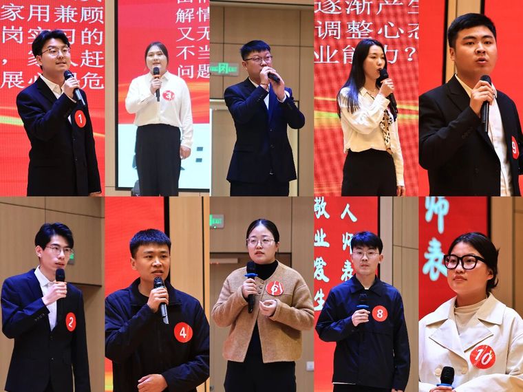 本次大赛以“以赛赋能、以赛促建”为目标,通过实战练兵着力提升辅导员的理论水平和职业素养。大赛设置多轮环节,涵盖理论测试、案例研讨、谈心谈话等核心环节,全面考察辅导员的综合素质。经过前期激烈角逐,10名辅导员凭借扎实的理论功底脱颖而出,晋级决赛。决赛现场,参赛选手紧扣学生教育管理、思想引领、心理疏导、危机干预等重点工作,以深厚的育人情怀、精湛的业务能力和灵活的工作技巧,生动展现了我校辅导员队伍“政治强、业务精、作风正”的良好精神风貌,不仅是一场业务能力的比拼,更是一次育人风采的集中展示。